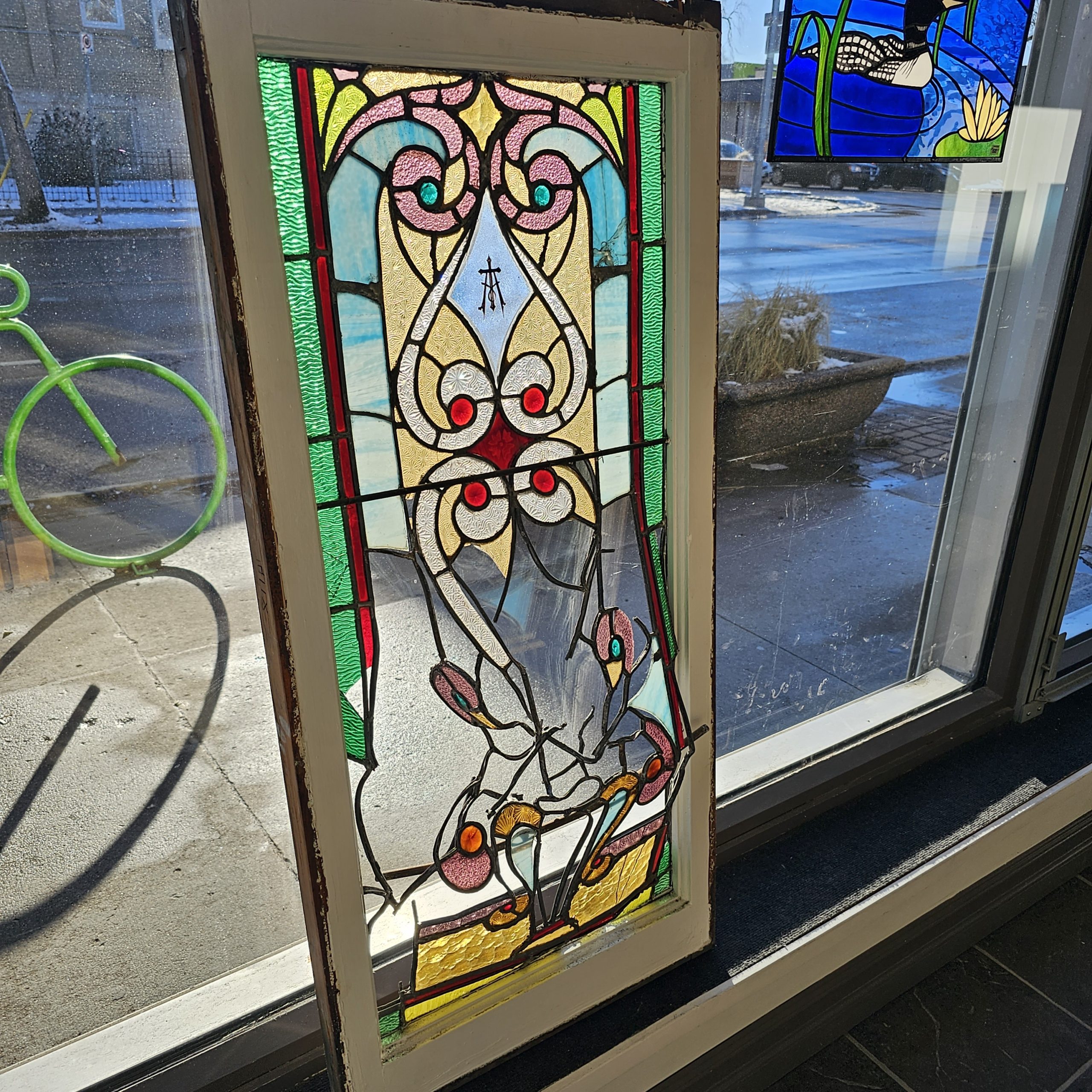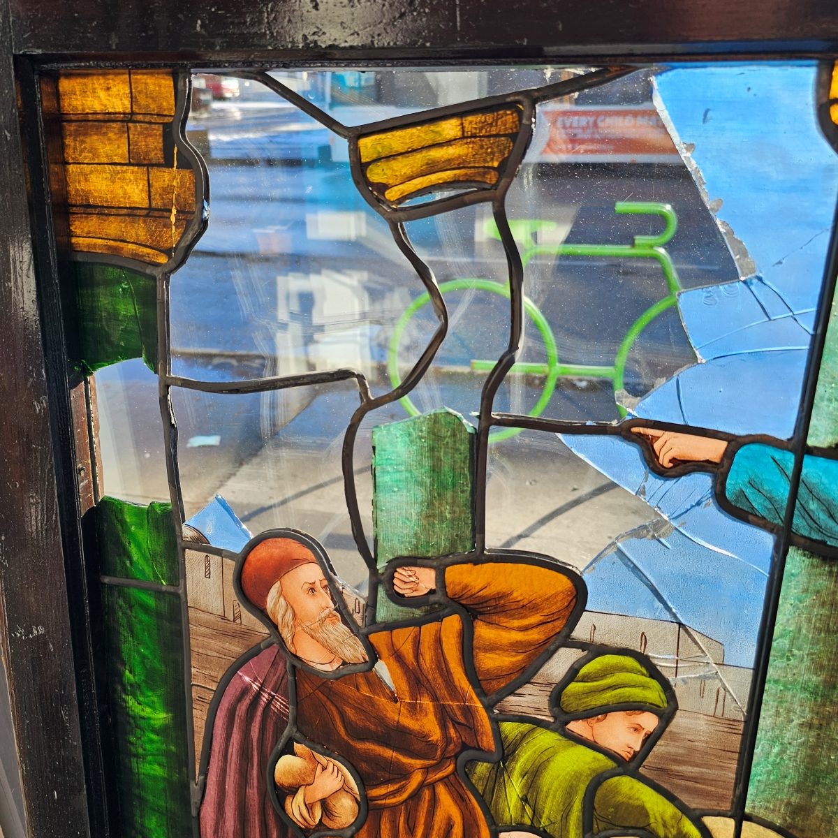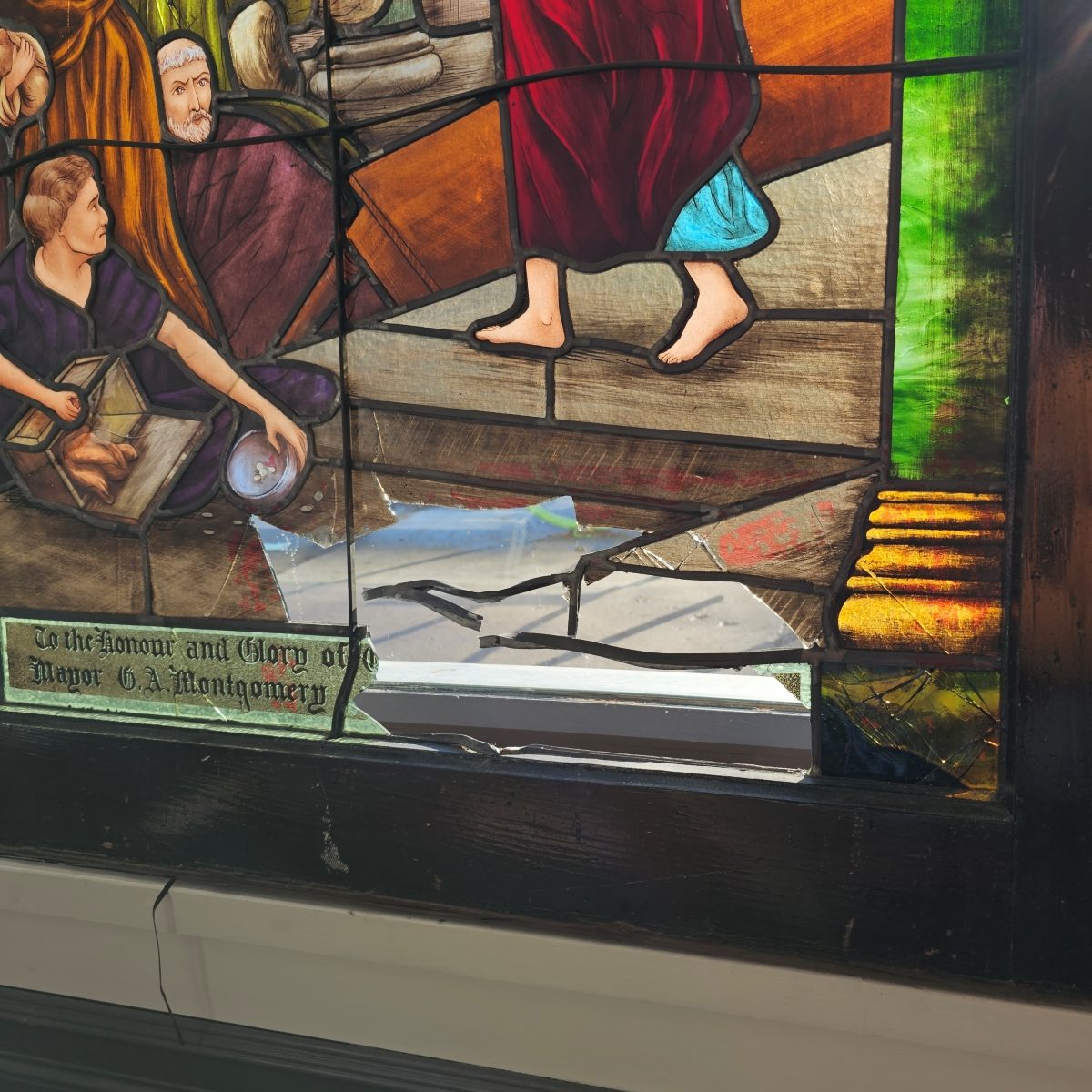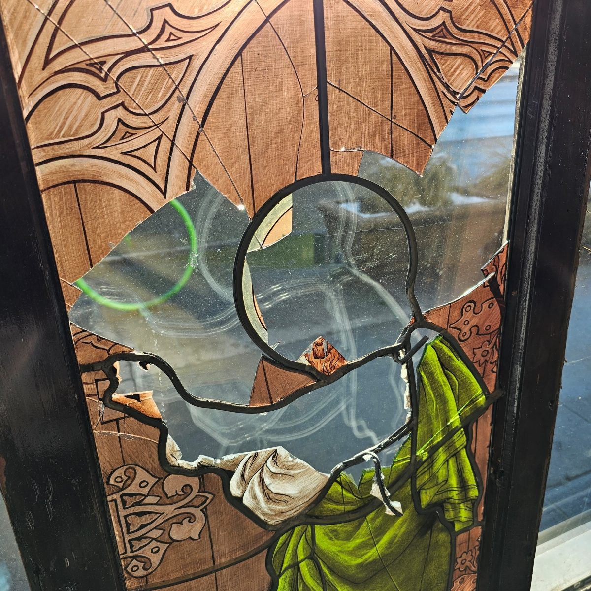 Unfortunately all three windows were heavily damaged due to vandalism which left most of the glass beyond repair. We were tasked with reproducing the painted details based off of fragments of glass and photos of the windows. This was no easy feat but as you know we are always up for a challenge!
