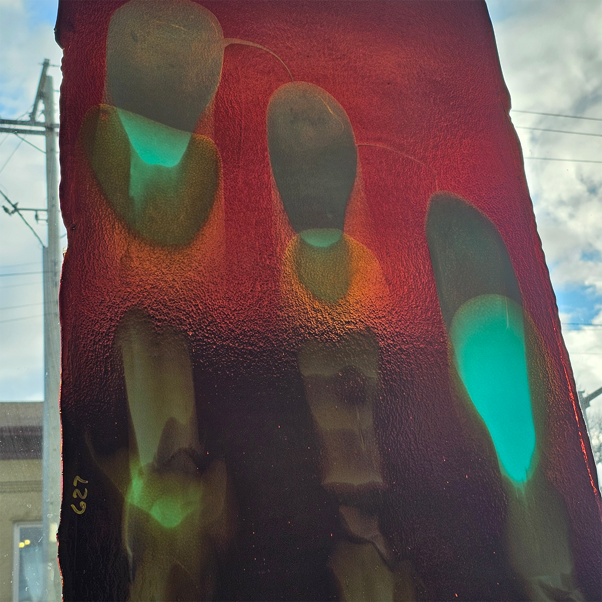Check out this striking colour combo of Dark Rose Brown with Turquoise Blue windows, hand made by the glass masters at Bullseye Glass.