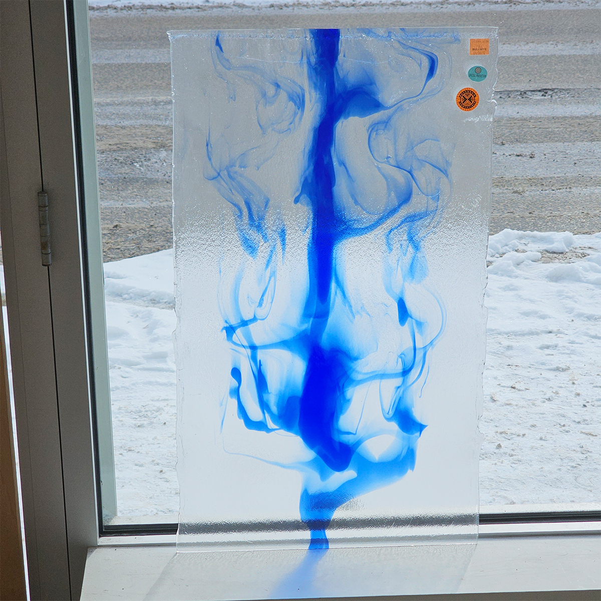 Check out this striking sheet featuring a one of a kind infusion of royal blue on a clear base.